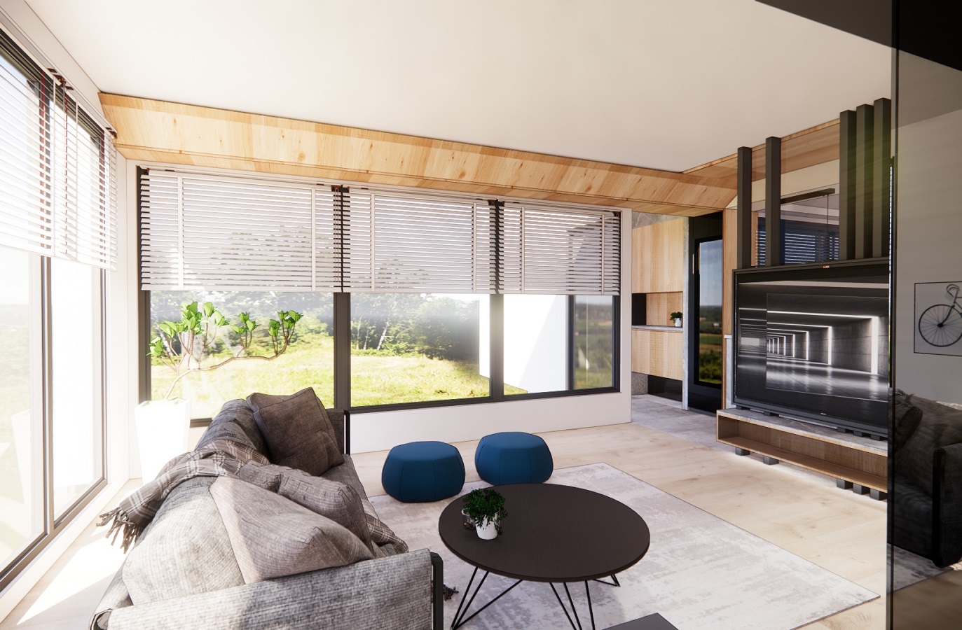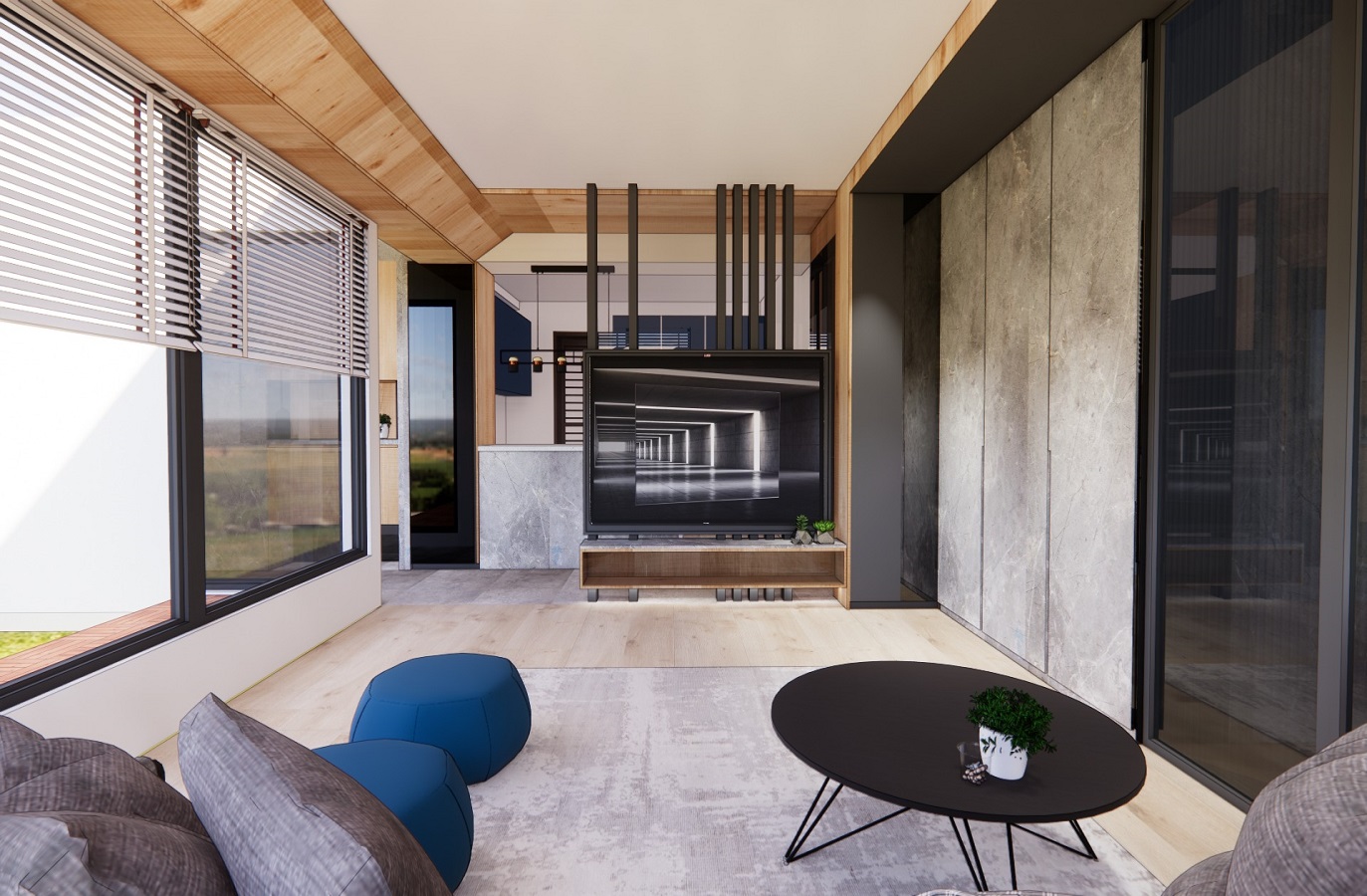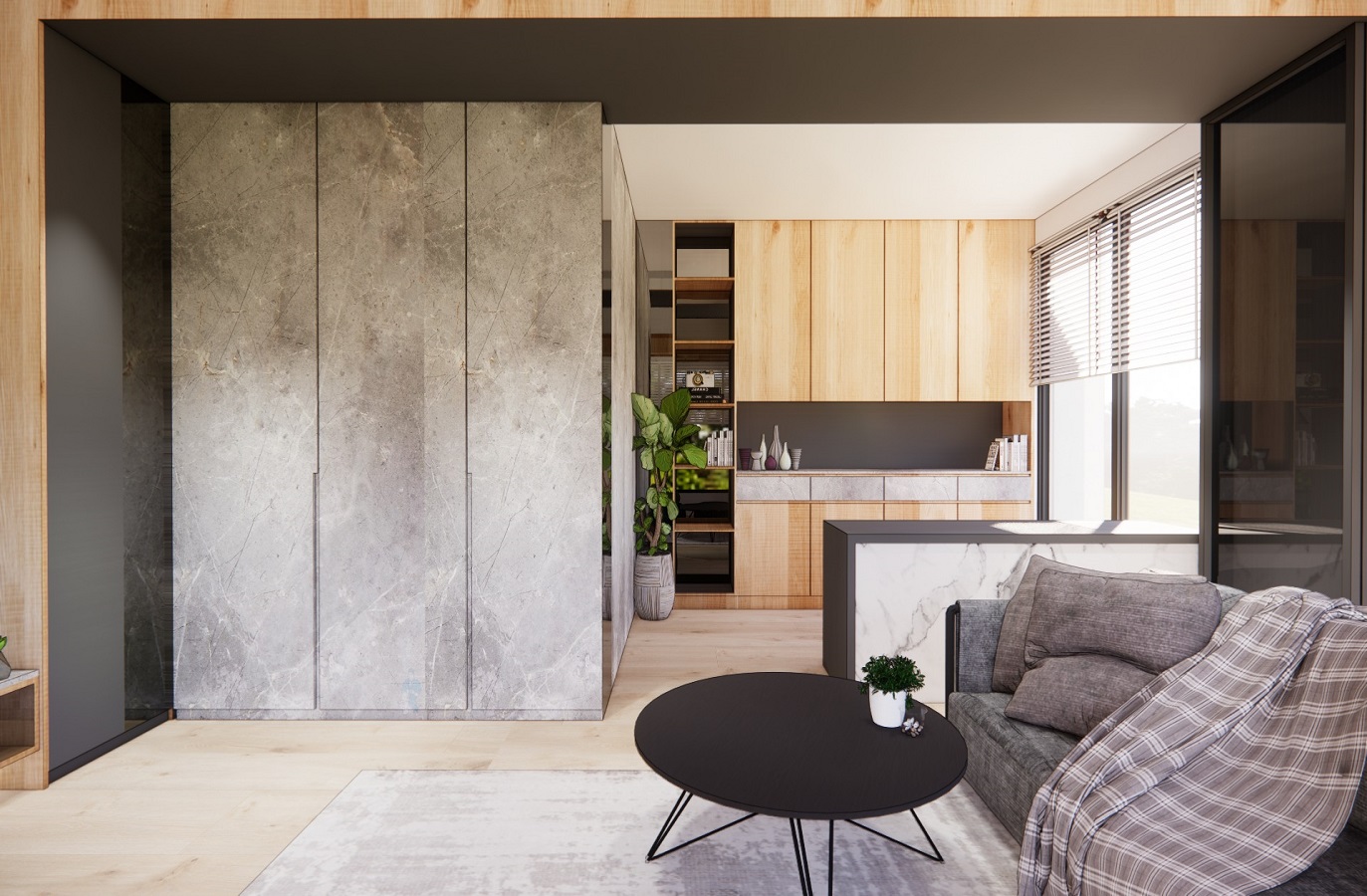 空間場域的配置, 透過起居室的規劃, 讓公私領域擁有靈活運用的彈性。