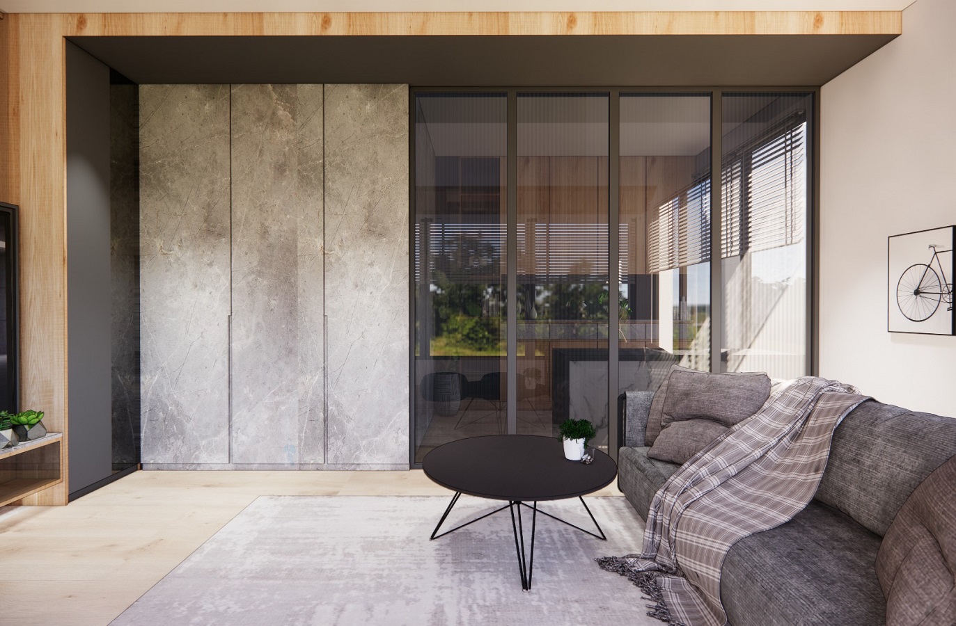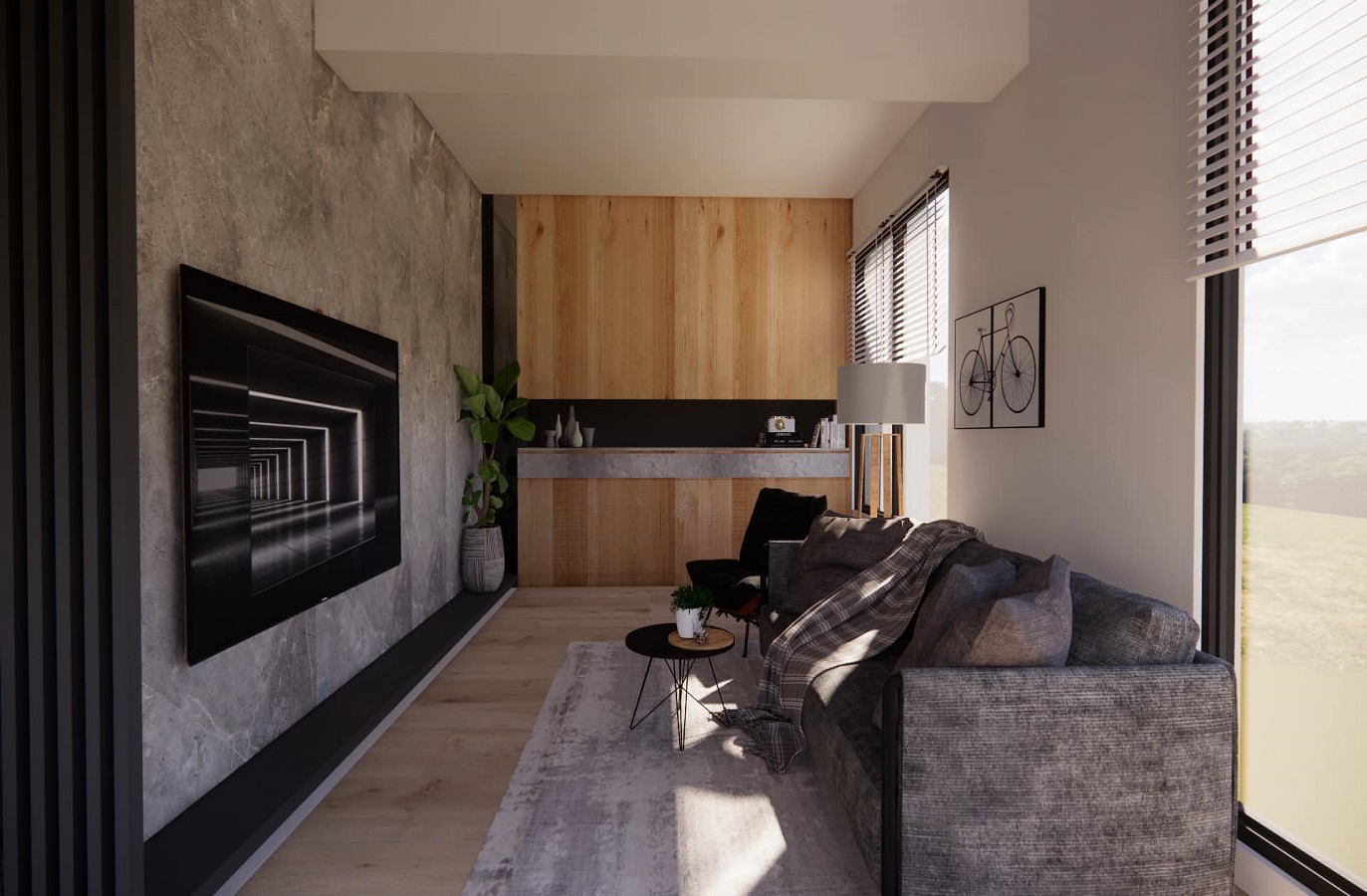 搭配深色系更能圍塑穩重氛圍,將空間中質樸的原木色調,揉入了一些工業風灰黑色系的元素,