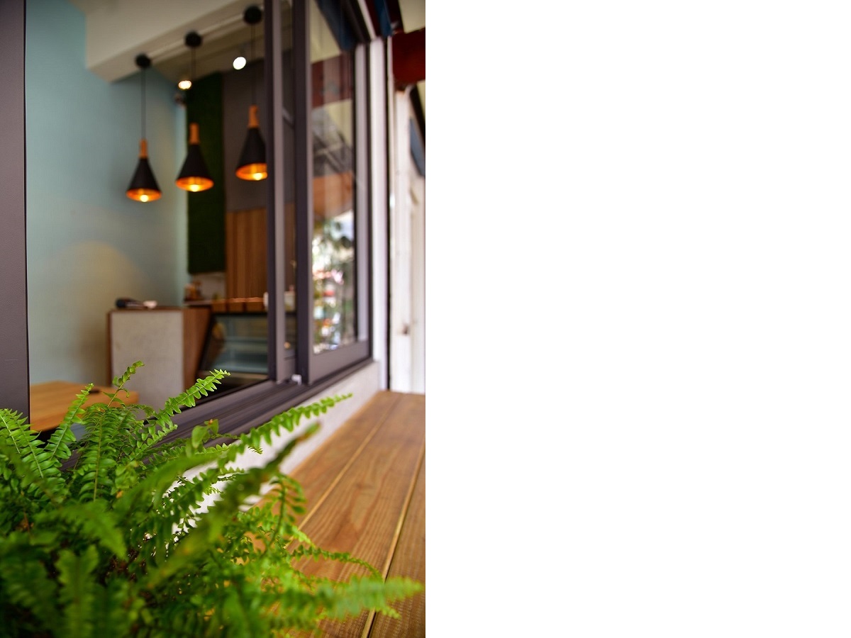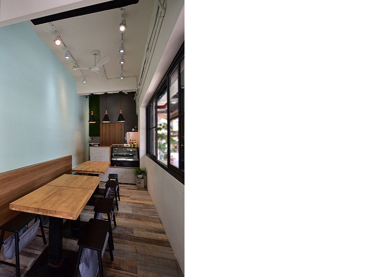 對於戶外客區的安排,我們視為道路與店家的中介緩衝空間,像牆面皮層的疊加,